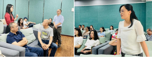 其中张媛老师和宋娜娜老师向邹老师请教自己的疑惑:“在思政教学实践中如何避免表达性小错误”以及“是否可以将辩证思想融入到课程中以及如何体现课程思政”两个问题。邹老师进行了详细的解答并与两位老师进行了精彩的讨论。同时鼓励各位老师在融入课程思政的过程中一定要形成自己的个人特色与风格,用自己的话、自己的思想阐述书上的原理,把书上的理论变成自己的东西,讲出自己的风格和个性。