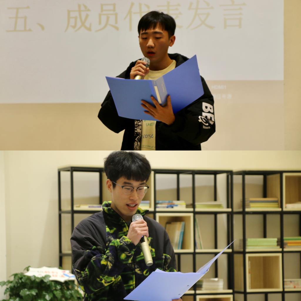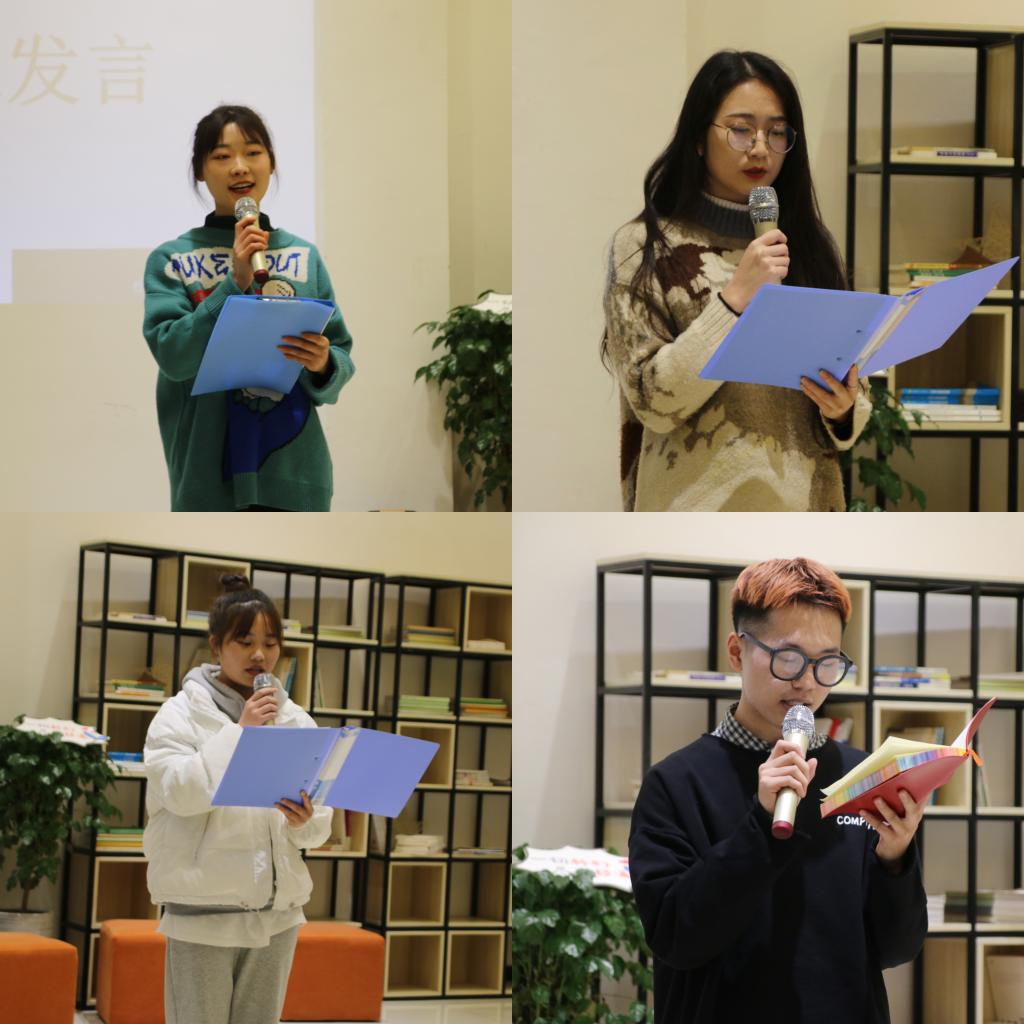 听完团长们的发言,外专组的成员为大家带来了诗朗诵+二重唱《当你老了》,大家安静认真地听,一边回想这个学期的点点滴滴。“当你老了,头发白了…”外专组同学的歌声结束后,各个组长依次上台分享了自己在本学期的工作思考和感悟,每一次活动同学们都在慢慢成长,大家的每一次相处都在拉进心与心的距离,大家庭的氛围也在每个人的努力中慢慢升温。