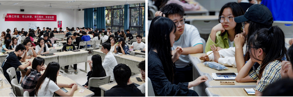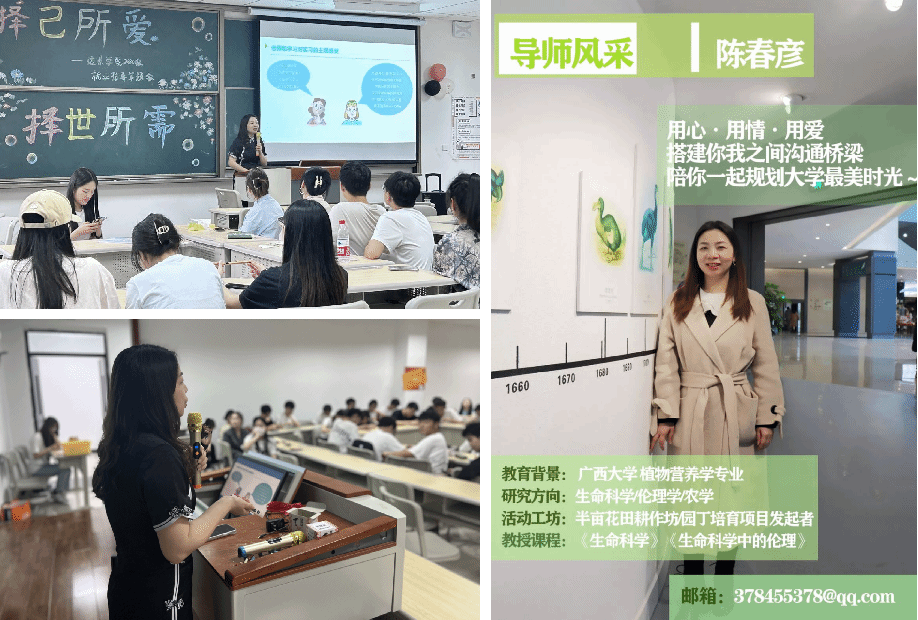 从同学们的需求出发,陈春彦老师分别从“实习—职场初体验”和“升学/考研是必须的吗?”两个维度进行讲授和引导。一方面通过实习前、中、后三个部分的阐述,强调了实习的重要性,实习不分群体,希望同学们都要去亲身实践;另一方面从升学的原因分析、利弊权衡,到生涯的不确定性,陈老师以自身的生涯规划经历作为案例进行生动的讲述,引发了同学们关于职业规划的深度思考和共鸣。