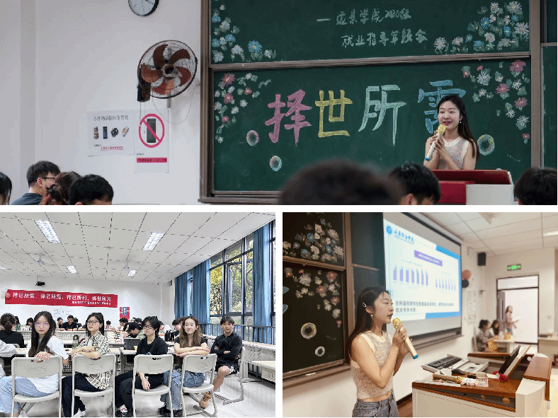 为了落实2020级就业前置,充分发挥2019级就业榜样力量,推进“双导师”协同促就业工作,让面对就业抉择十字路口的2024届毕业生更早明确职业规划方向, 4月21日16时,远景学院2020级毕业生就业意向摸排及专题培训会于第九教学楼9101举行。出席本次年级会的有远景学院专业导师陈春彦、2020级辅导员付海明、2019级辅导员杨斌誉、2019级优秀毕业生、2019级未就业毕业生和2020级全体学生。