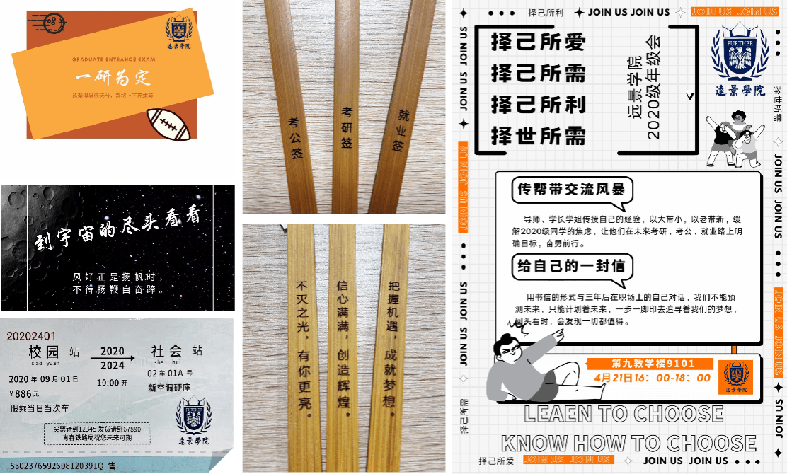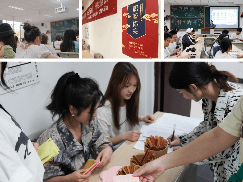 来到签到台,同学们根据自己的就业意愿选择名为“就业签”、“考研签”、“考编签”的福签,并落座相应的板块区域。有些同学毫不犹豫的做出了选择,也有的同学犹豫不决……在引发同学就业规划思考的同时完成了签到。依据现场抽签数量显示意愿考研约占31.8%,意愿考编约占11.5%,意愿企业就业约占44.6%,其他约12.1%。这一站,多少人坚定选择好心仪的列车,多少人需要中途转站,多少人能到达终点,源于每个同学规划的重要抉择。