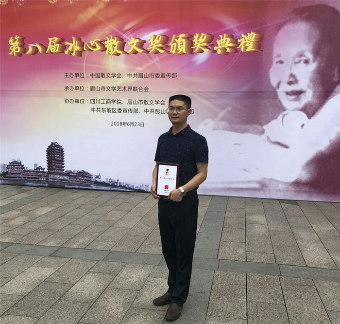 第八届冰心散文奖新鲜出炉!6月23日,第八届冰心散文奖颁奖仪式暨获奖作家东坡故里大型采风活动在四川眉山举行,我校创意写作学院教师徐庶等捧走本届中国散文最高奖——冰心散文奖。