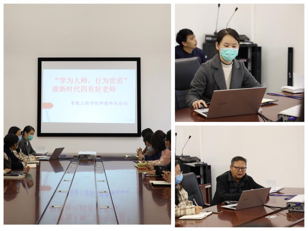 参会教师纷纷发言,大家表示此次培训受益匪浅。学为人师,行为示范,作为智能工程学院教师,要共同打造守正奉献的师德师风,在以德立身中提升自我修养,在以德施教中潜心育人,要认真做好本职工作,积极努力鞭策自己,投身教书育人的伟大实践中。
