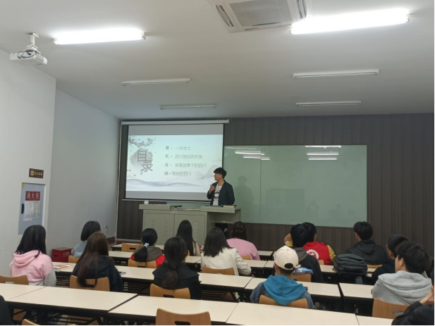 本次精品课堂伴随着观看四川印象纪录短片进入尾声,其中的民居、美食、风景,无不把巴蜀特色和文化展现得淋漓尽致,同学们对于巴蜀之地也有了更深刻的认识。综合管理部部长谢婷婷同学在这结尾之际对本次精品课堂进行课堂总结,她表示到钓鱼城之战是民族历史正义之战,其背后所想传递的历史文化内涵值得现如今所有人去深思、去传承。