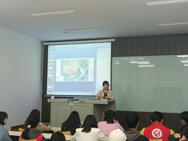 罗桢林同学以四川的自然地理环境为切入点,从地形、气候、水系、土壤等多方面分析了四川形成天然复杂险峻的地理位置优势。场下的同学发出感叹:“果真是如《蜀道难》中所描述的的川蜀一般,‘蜀道之难,难于上青天’啊,何其乘高居险”。古巴蜀历史悠久,罗桢林又结合近期社会热门话题“三星堆”带领同学们了解了更加久远的巴蜀文化。