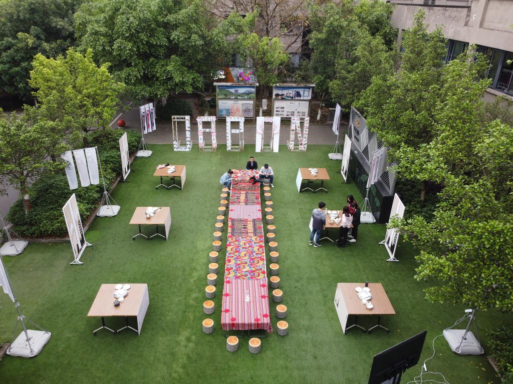 海纳百川,风起万野。中国传统文化对东方邻国的影响尤为重要,至今不少亚洲国家的文字、饮食、服饰等传统文化依然与中华文化渊源甚深。活动现场,通过代表美食、动漫文化、品牌等组成的文字图样,悬挂的彩旗,极具氛围感的场景布置淋漓尽致地展现了“映像·国际”工作坊系列活动的高水准。