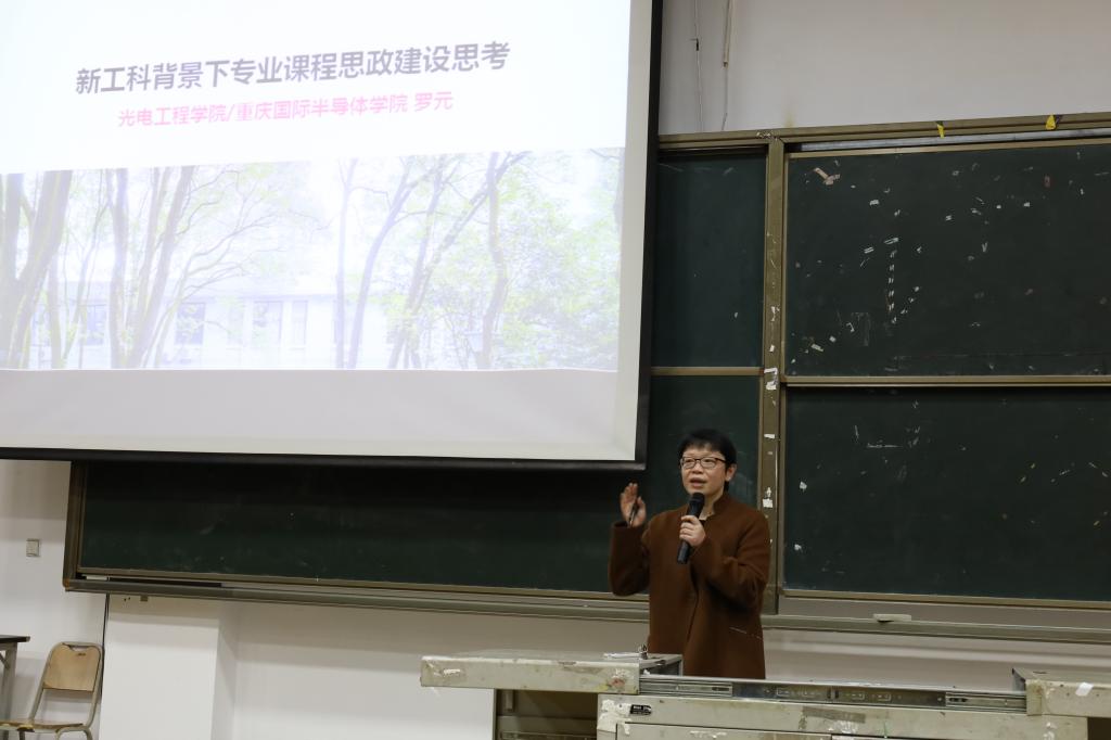 罗院长以国家级一流专业建设点—重庆邮电大学光电信息科学与工程专业7个课程教学为例,指出教师要以德立身、以德立学、以德施教;课程要细梳理、精设计。例如《激光原理》课程的设计,提到我国超强超短激光研制取得了重大突破,提振了学生的民族自豪感;《光电图像处理》课程,可引入“一生二,二生三,三生万物的思想”,引入“少才是多的哲学理念”。