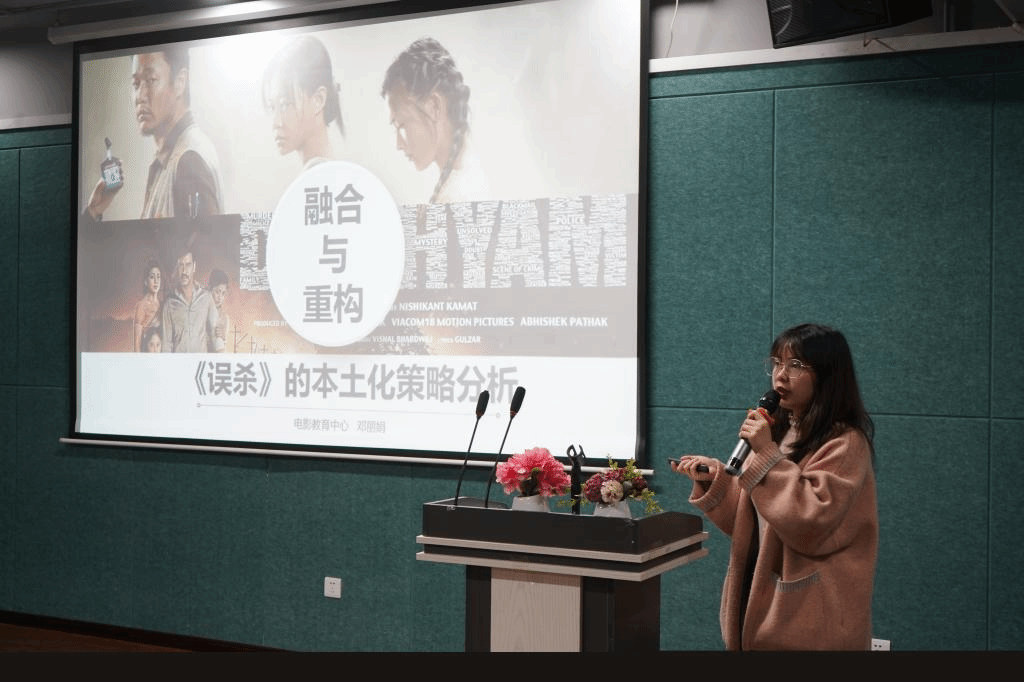 一部好的电影,能洗涤心灵,提炼爱与希望的力量。为提升移通学子的艺术鉴赏力,提高对电影独特的思考与见解的能力,从而获得更好的艺术视觉感受,2021年4月12日19点,爱莲书院联动电影教育中心于多功能影音室举办了《融合与重构——<误杀>的本土化策略分析》主题讲座,邀请到邓丽娟老师进行讲解,与60余位移通学子一同品鉴电影艺术,挖掘影视哲学。运用“育人融合”模式共同为我校艺术文化建设添砖加瓦。