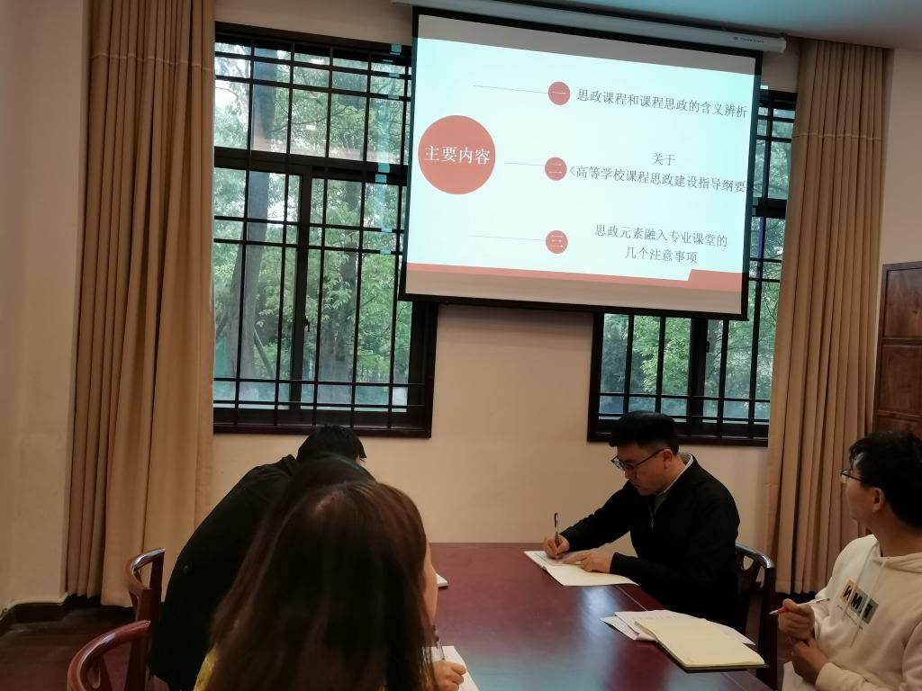 会上,毕毓璟老师从思政课程与课程思政的含义辨析、关于《高等学校课程思政建设指导纲要》、思政元素融入专业课堂的几点注意事项三方面入手,结合习近平总书记关于立德树人的重要论述、国家关于课程思政建设的纲领性文件以及自身思考为研究院教师带来了一场深入全面、精彩纷呈的讲解,让老师们对高校课程思政建设有了更为深入、透彻的了解。