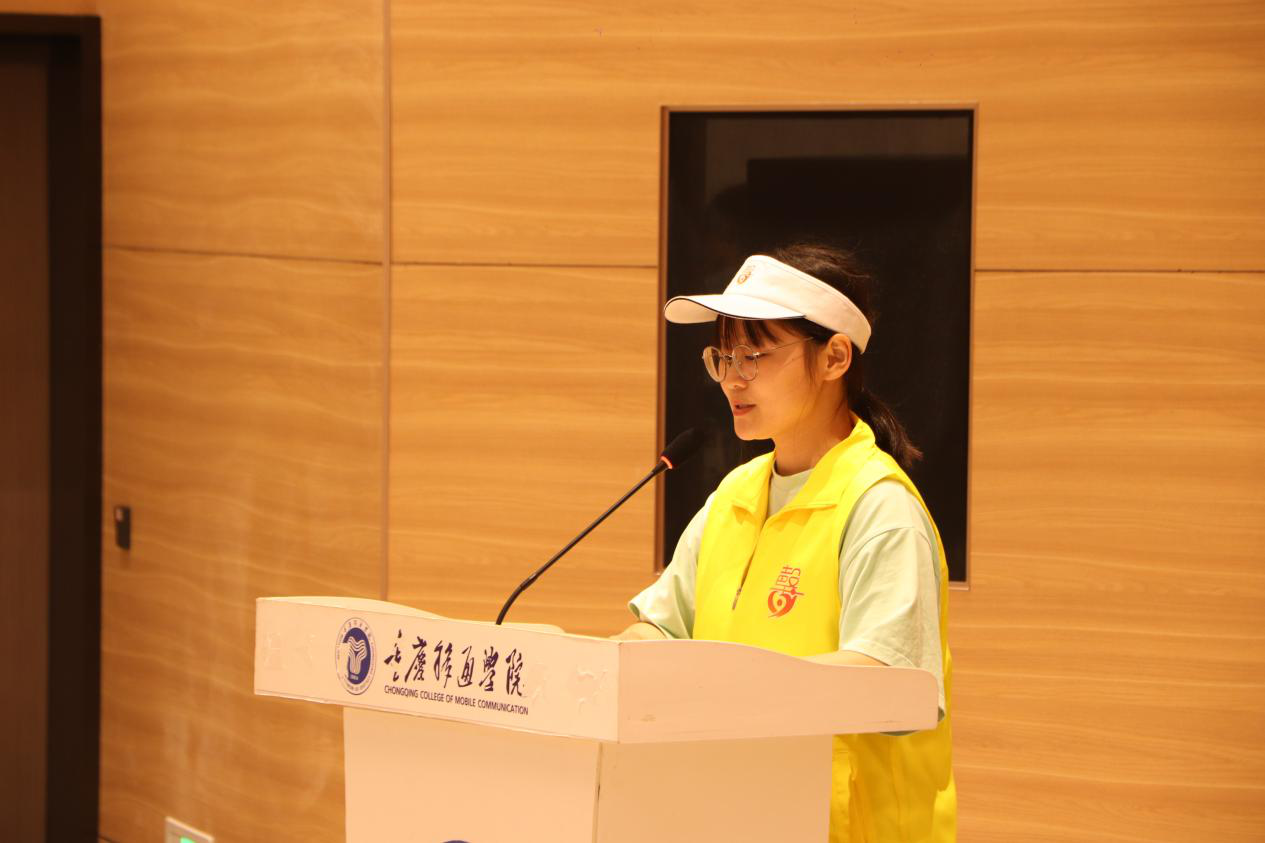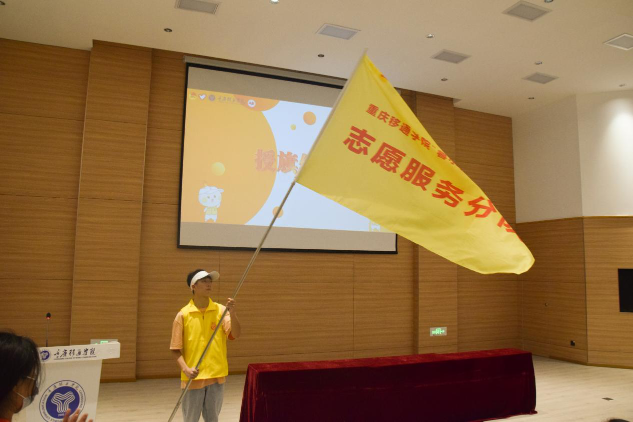 校团委副书记谢银平老师将代表“责任与使命”的旗帜授予“馨小青”队伍,随后移通学院“馨小青”代表共同起立,在旗帜下庄严宣誓。最后,谢银平老师结合我校志愿服务发展实际对“馨小青”队伍提出了要求和希望,她表示,这支队伍受到重庆市团委、市残联、校团委的大力支持,希望所有“馨小青”能够永葆初心,积极践行志愿服务精神,时刻准备好为残障人士服务,以最饱满的热情来对待接下来一年的助残志愿服务工作,在实践的过程中成长,营造扶残助残的良好氛围。