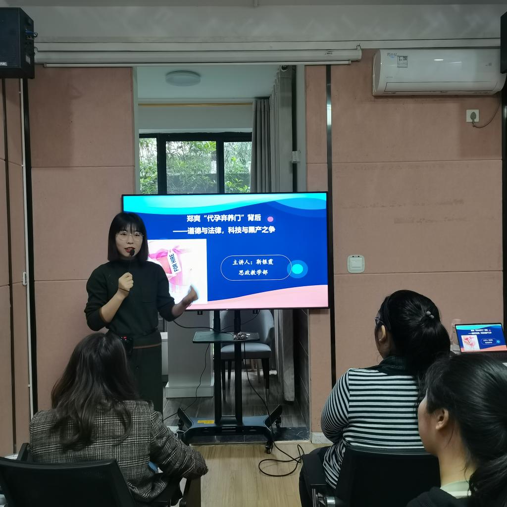 法者,天下之程式也,万事之仪表也。在我国现行法律框架内,生命权不容交易,代孕违法性不容置疑。“弃养”侵犯了生命之尊严、敬畏。为了让同学们增强“珍爱生命,敬畏法律”的意识,进一步推进学院“四位一体双院制”协同育人,4月7日下午,思政教学部与鱼城书院共同举办了“鱼城热点研讨会”第十四期:郑爽“代孕弃养门”背后——道德与法律,科技与黑产之争。本次研讨会主讲人为思政教学部靳银霞老师。