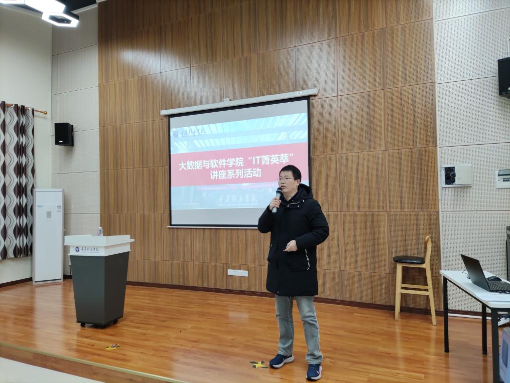 为了促进教师对我国计算机相关领域学科前沿的了解,掌握最新的研究动态,在与校外专家的学术交流和思想碰撞中拓展视野。大数据与软件学院于12月15日邀请重庆大学光电工程学院沈宽教授莅临我校天渠书院111报告厅,举行了“IT菁英萃”讲座系列活动。本次活动由闫会峰院长主持,大数据与软件学院全体教师参会。