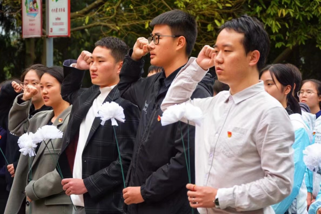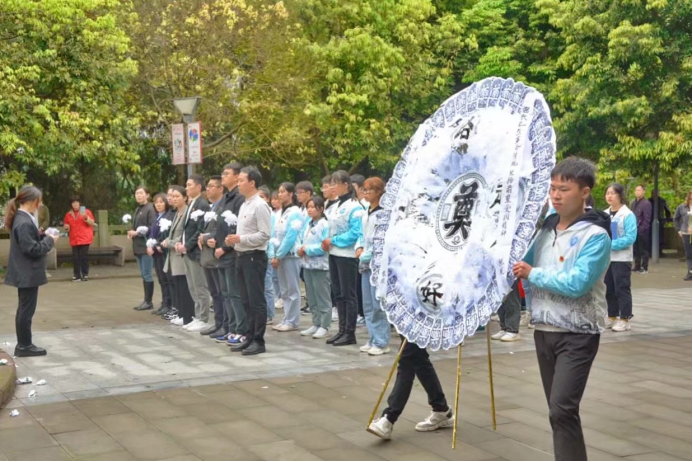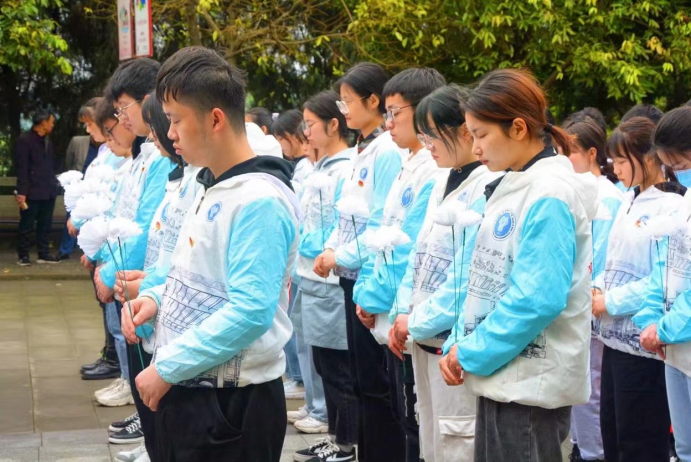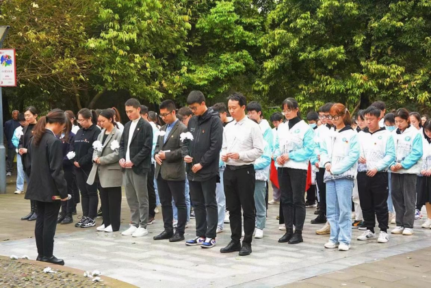 我校第十三届社团文化艺术节借清明节到来之际,为缅怀革命先烈,追寻英雄足迹,继承先烈遗志,弘扬民族精神,增强当代高校学子的责任感和使命感,于4月2日上午10:00点开展公益扫墓活动。本次活动由我校学生社团联合会牵手青年志愿者联合会、传统文化社团联盟、绿色社团联盟和移通机关第四党支部共同举办,作为社团文化艺术节子活动之一决定以弘扬优秀传统文化内涵的形式进行。师生代表共计60余人参与活动,于清明节前夕一同前往合川区人民公园的烈士陵墓,感恩英雄事迹,感受家国情怀。