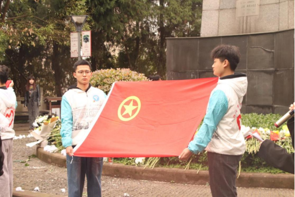 烈士碑前,来自钓鱼城研究会三名同学为大家讲解了诸多重庆烈士的英雄事迹,例如重庆江津英雄聂荣臻,作为中国十大元帅之一曾指挥平型关战役、百团大战等著名战争;来自綦江的革命先烈王良是中国工农红军建军初期的著名将领,毛泽东同志给予了他高度的赞扬且参与多次反“围剿”战争......现场同学沉浸在烈士的英雄事迹中,仿佛这些英雄就在眼前,也让同学们反思应以革命先烈为榜样,继承光荣传统,学习优秀品质。