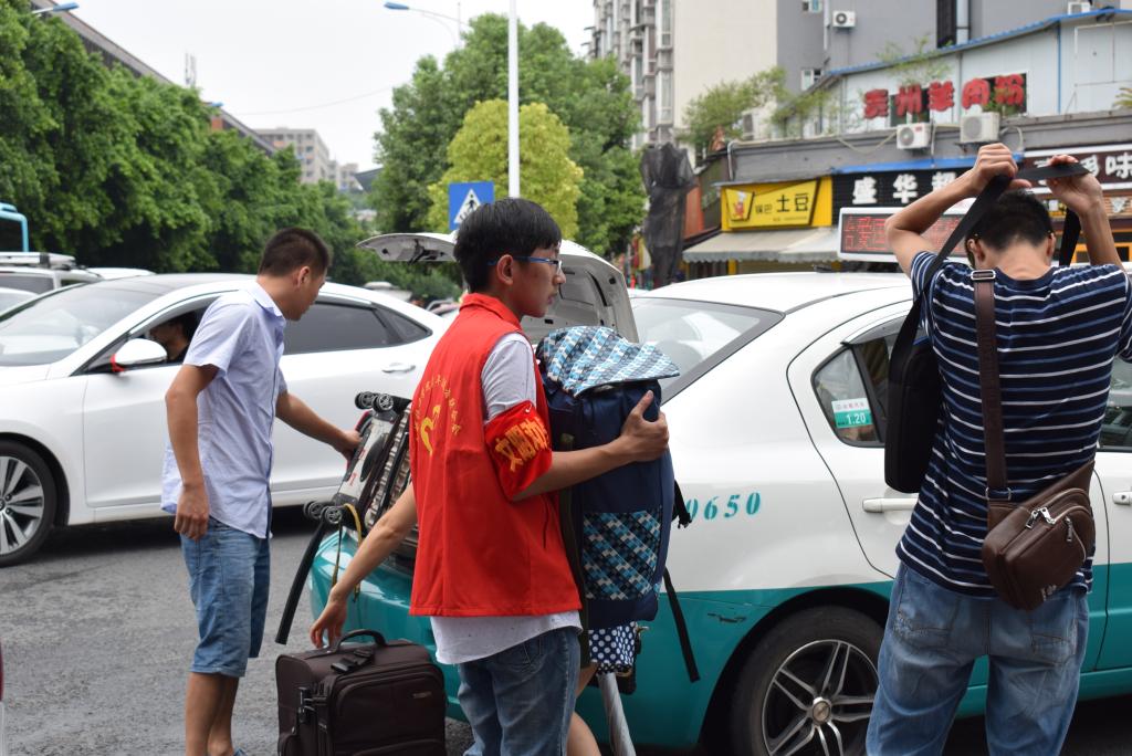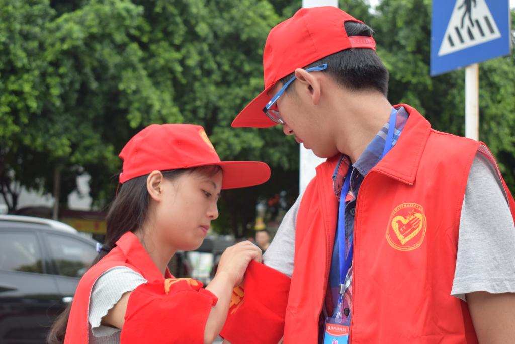 烈日和微雨相伴的三天,晒黑了他们的皮肤,却蒸发不了他们心中的热情,微雨淋湿了他们的外衣,却灭不熄他们的赤诚动力。在学校的各个交通要道口,他们礼貌的提醒司机文明停车;耐心的为新生指引方向,并为有需要的人群提供行李搬运;在斑马线两端,他们温馨提醒着来往的学生、家长注意安全,请走斑马线。一次次弯腰够背捡拾垃圾,是他们在戴上文明劝导员的特殊徽章时,深入内心的责任。显然,团队成员在经历过一次次的学生活动参与中褪去了初次见面的羞涩,脸上洋溢着与烈日微雨不相呼应的微笑。三天下来,他们为新生、家长们答难解疑,虽有长期站岗的疲惫羁绊,却因彼此的友好交流成了一次次别样的心路旅程。“学长学姐,你们真的很热情周到,谢谢你们!”,“孩子,辛苦你们了,你去休息一会吧!”一句句简单的感谢,却如同一股清流淌过每个成员的心间,心灵的满足早已驱逐身体的疲惫。有成员说,和第一次迎新不同的是,他能更加大胆的主动与人交流,几天工作下来,文明劝导员,在他心里也不再是一个人物身份的设定,而是他以后生活中文明行径的标榜。他很享受这样的过程,也很感谢有这样的机会参与志愿工作,自加入剧场管理团队这一年多,不断在进步与改变中。