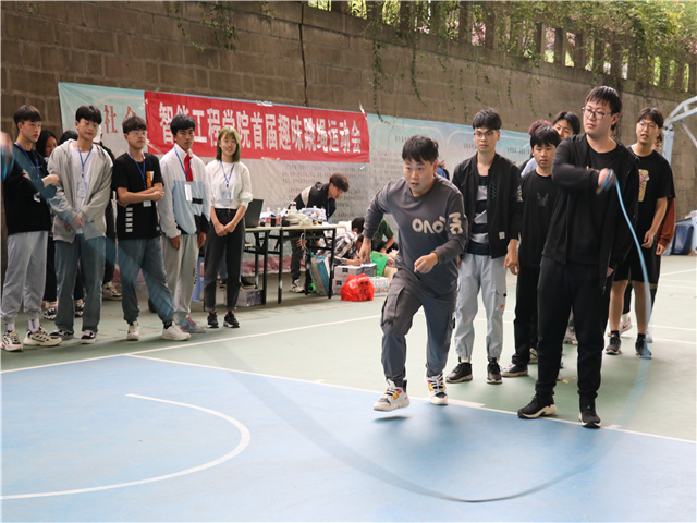 青春洋溢显身手,绳绳舞动展英姿。为培养学生的团队意识,增强学生体质,3月31日下午,智能工程学院首届趣味跳绳运动会在C区风雨篮球场举行。此次跳绳运动会设有单人跳绳、双人跳绳和十人长绳3个项目,全院11个班级参加了此次比赛。竞技体育中心刘玉林主任、黄静教练,智能工程学院李巧副院长、团总支书记郭菲老师,以及智能工程学院体育协会指导老师孙良顺老师、粟丹老师亲临现场为参赛的同学加油助威。