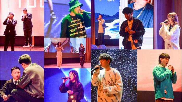 中场听歌识曲游戏环节,观众积极热情,参与度高,意犹未尽。第二轮中,4号选手“豪桑心”组合,两人分为高低声部,在第二轮演唱《喜剧之王》时,视频中加入了自己生活中的片段,歌词与画面对应,幽默风趣,边唱边演,最终斩获冠军;9号选手张誉瀚安静、沉稳且富有感情的演唱拿下比赛亚军。10号选手梁晏尉在第二轮演唱《海芋恋》时,快速的临场反应和演唱氛围调动再一次将比赛推向高潮,最后荣获季军。5号选手孙宇盺出色的现场表现获得最具潜力奖、6号选手张坊轻松欢快的演唱和8号选手闫诗睿温柔细腻的演唱均获得优秀奖。随后,第九届学院十佳歌手冠军曹瑞学长带来说唱《外公外婆》(原创)嘉宾表演。同学们表演的形式多种多样,让观众们叹为观止。