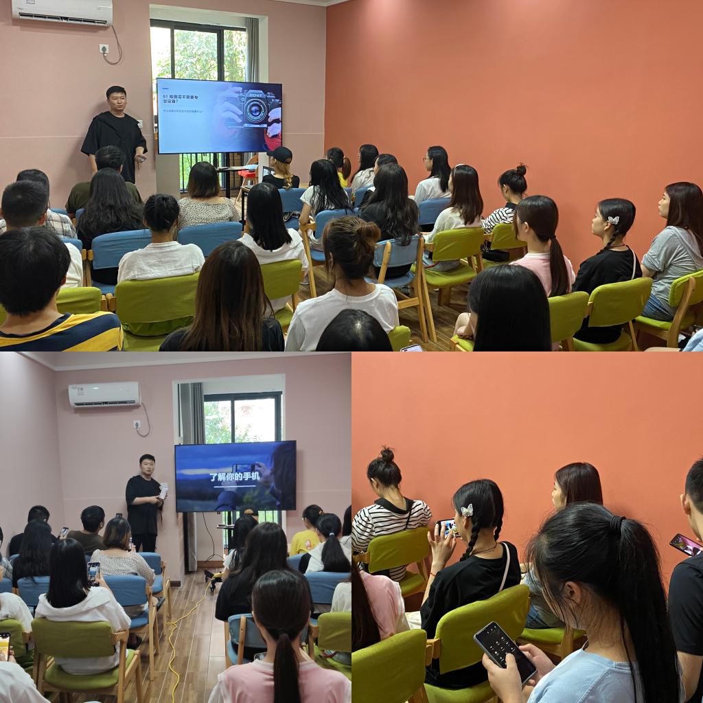 在本期培训中,徐新宇老师以手机拍摄短视频为主题,从手机设备认知、景别的分类和传达的含义、构图方法、运镜等4个方面展开。其中,在认识和如何使用手机部分,分别从帧率、HDR、手机专业模式、清晰度为同学们带来完整的手机相机知识。在手机专业模式中,他介绍了感光度、曝光度、对焦以及白平衡,并详细地介绍了其使用方法。同学们认真听讲,同时拿出移动通讯设备一起操作,学习积极性非常高。