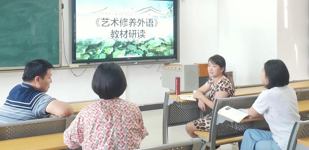 教研活动从学情分析开始。与会老师结合该门课程涉及的动画、广播电视编导与数字媒体艺术等专业学生的英语基础,对其英文听说读写能力与教材适配度进行了评估。而后,老师们认真学习了该门课程标准,在熟知课程性质、地位与目标后,对备选教材进行了集体统读与探讨,得出该教材板块划分清晰、内容相对全面、配套练习设置合理、实用性较强、与相关专业学生的培养要求相符度高的初步结论。
