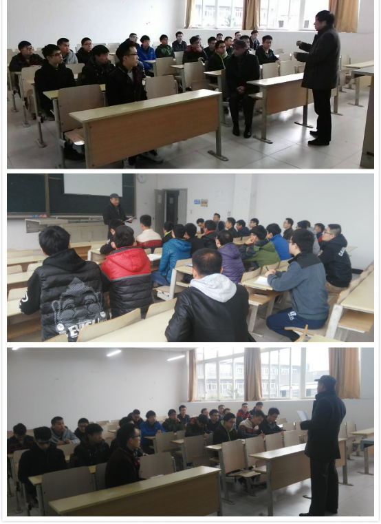 2016年12月29日上午8点半,2017届机械设计制造及其自动化专业20名在重庆红亿机械有限公司进行毕业设计的同学们早早的来到了2306教室,等待着导师姜国宾总工程师的到来。9点钟,姜总在汪主任的陪同下来到了教室,随同的还有机械工程教研室主任田于财老师、下学期到红亿机械有限公司参加“双师型”工程实践锻炼的何聪和张钰柱两位老师。