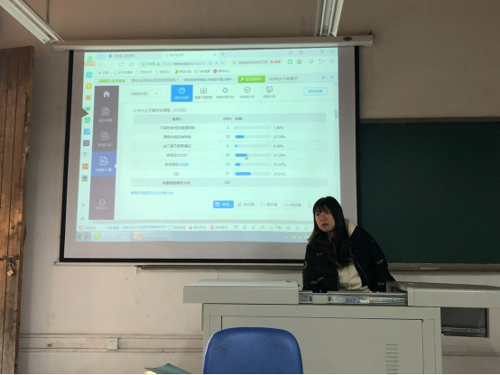 前期《博雅英语》课程团队针对2019级和2020级已经修读过博雅英语的同学进行了问卷调查。李老师引导老师们认真分析问卷调查反馈,逐条梳理同学们的建议和意见,借此机会进行了更为深入的学情分析,了解学生们在课程中的收获、疑惑、困难,并希望以此为契机和方向,深化课程改革,丰富教学案例,建设适应我院学生的精品课程。同时抓住现代信息技术对教育教学的支持和融合端口,推进课程的线上、线下资源的应用和共享,丰富学生的学习获得感,提升课程教学质量。