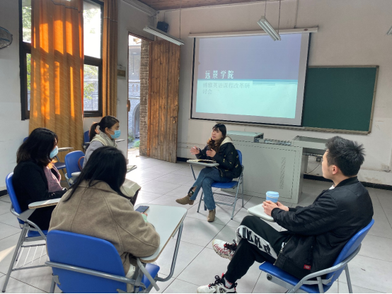 11月18日,远景学院语言与社会科学教研室《博雅英语》课程教学团队在多媒体教室1开展《博雅英语》课程改革系列第二次讨论会。会议由教研室主任李梦瑶主持,课程团队教师们围绕会议主题进行了积极发言。