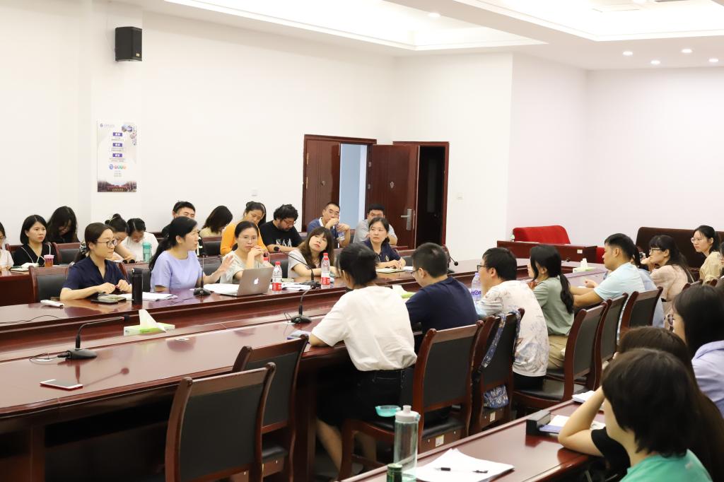 本次交流会议内容主要有两个环节:一是由各个课程组进行课程建设汇报,并针对课程建设中出现的问题向潘教授请教;二是自由交流,现场参会的老师们可就自己教学相关的困惑与潘教授进行深入交流。
