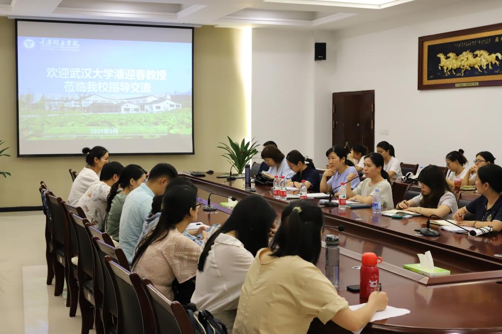 下午16时,潘教授与通识教学部及远景学院全体教师在行政楼107会议室举行课程建设指导交流会,本次会议由通识教学部主任皮若兰主持。
