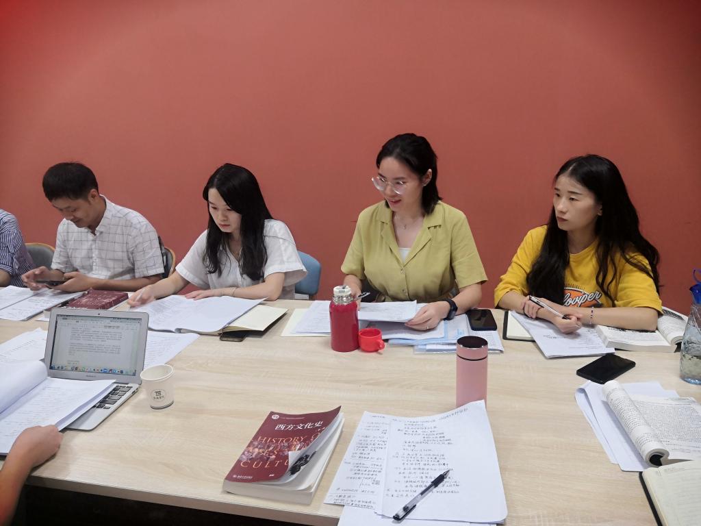 历史课程团队负责人邓露露老师简要介绍了在潘教授的指导下,《欧洲文明的现代历程》的建设情况,并向潘教授请教新出现的问题,如中世纪部分教学内容的取舍等。对此,潘教授结合上午的听课情况给出四点建议:其一,继续集体备课,集思广益博采众长。这样不仅可以丰富课程资源的建设,也利于课程后期的提升。当然在备课的过程中不仅要注重大纲的修订,更需要注重每个细节,无论是课程环节的设计,还是讲授语言的使用,都需要在集体备课的过程中反复推敲;其二,合理利用线上平台,学习通、微助教等,教师都可以通过这些软件引导学生正确的使用手机。其三,明确课程建设的目标,应该以精品课程为标准来进行课程建设;其四,注重课堂管理,精心设置问题,设计教学环节,在PPT图文的选择等方面多下功夫,提高学生课堂参与度。为了确保课程大纲的执行,课程组内教师尽可能的统一上课进度,对教学内容适当取舍。