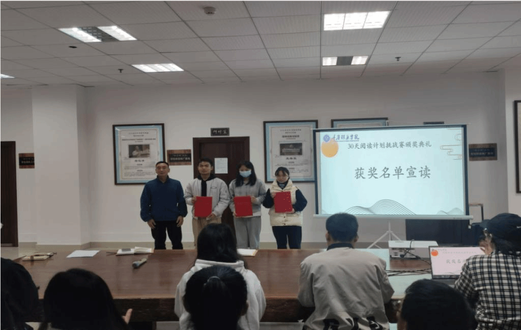 随后进行了“30天阅读计划活动”的颁奖仪式。本次活动旨在培养新生读者的阅读习惯,挑战之处在于不间断的到馆借阅。通过优学派发布,在短短十天的报名时间里,先后吸引了近五百名学生报名参加,累计增加到馆人次近5000人次。
