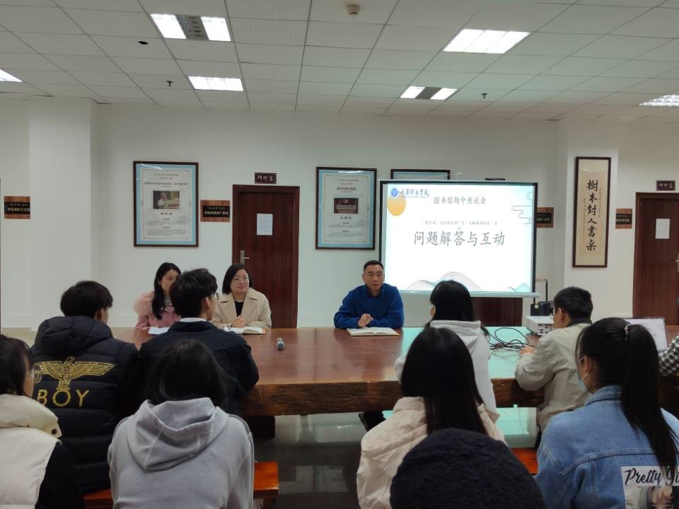 此次活动在图书馆标志性的树人书桌举行,旨在畅通读者和图书馆的信息交流渠道,了解同学的阅读情况,同时为同学解决在图书馆阅读所遇到的问题。活动开展前期,图书馆向图管会干部干事以及全校读者征集意见,共计收到了7份图书馆意见征集表,老师与学生共同围绕征集到的“双子湖”文化阅读活动开展、“大咖阅读传记”等方面意见进行座谈。