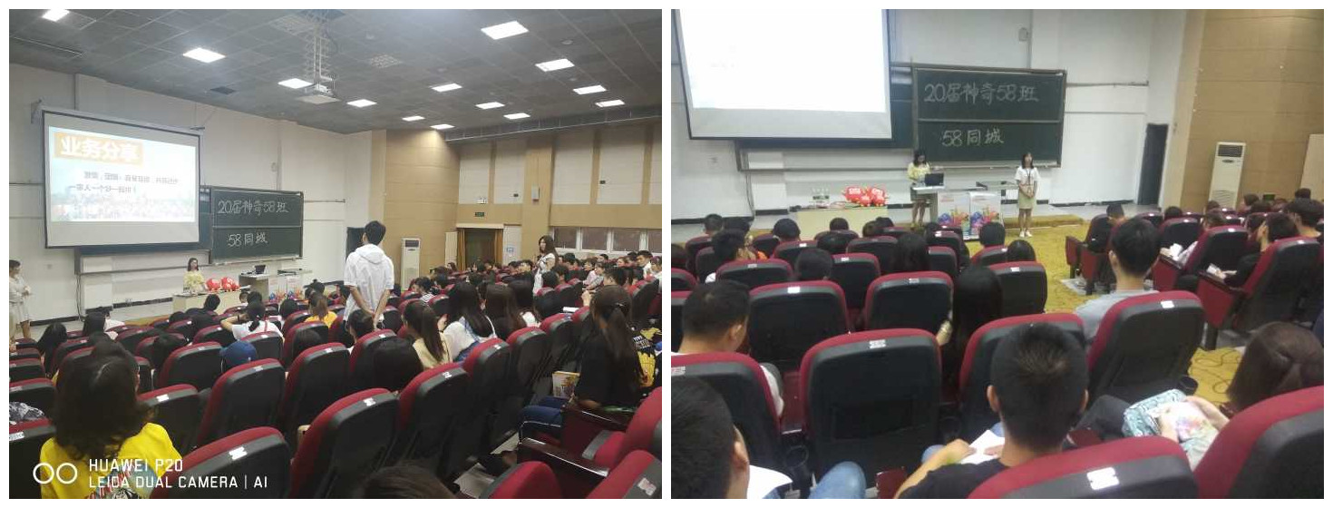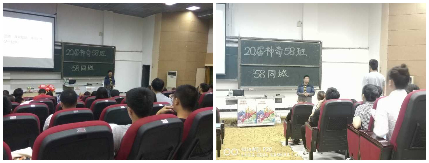 随后,我校现就职于58同城的两位校友吴高亮、周梦娜受邀在宣讲会上进行分享,两位从自身实际工作情况出发,详细的为在场同学讲解工作的技巧,通过与他们的讲解和小游戏互动环节,同学们对58同城的了解更进了一步。