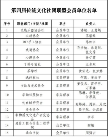 为进一步加深各成员对工作的了解,提高工作效率打下良好基础。第三届传统文化社团联盟秘书长邹慧琳同学宣读《重庆移通学院传统文化社团联盟章程》,会议成员一致通过此章程。章程的通过使得新一年的传联有了清晰的目标规划,同时崭新的社团元素加入进来,为传联增添抹瞩目的异彩。第四届传统文化社团联盟新申请单位心理协会孙亿菊同学进行自我推荐,向大家展示社团优势并期望与传联共成长。