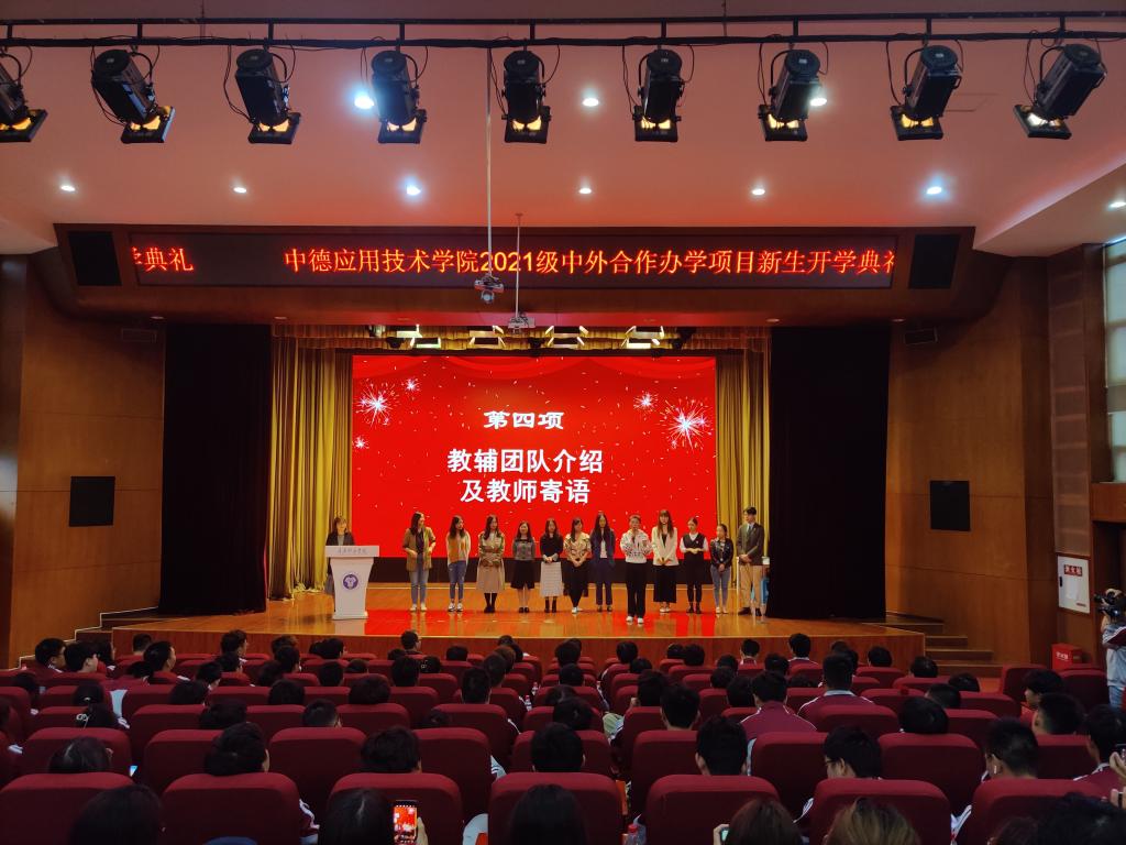 随后,2021级全体德语教师、雅思教师和辅导员纷纷上台亮相,用中德、中英双语寄予莘莘学子们殷切期望,希望同学们不负青春,逆流而上,成为德才兼备、全面发展、勇于拼搏的高素质优秀人才。