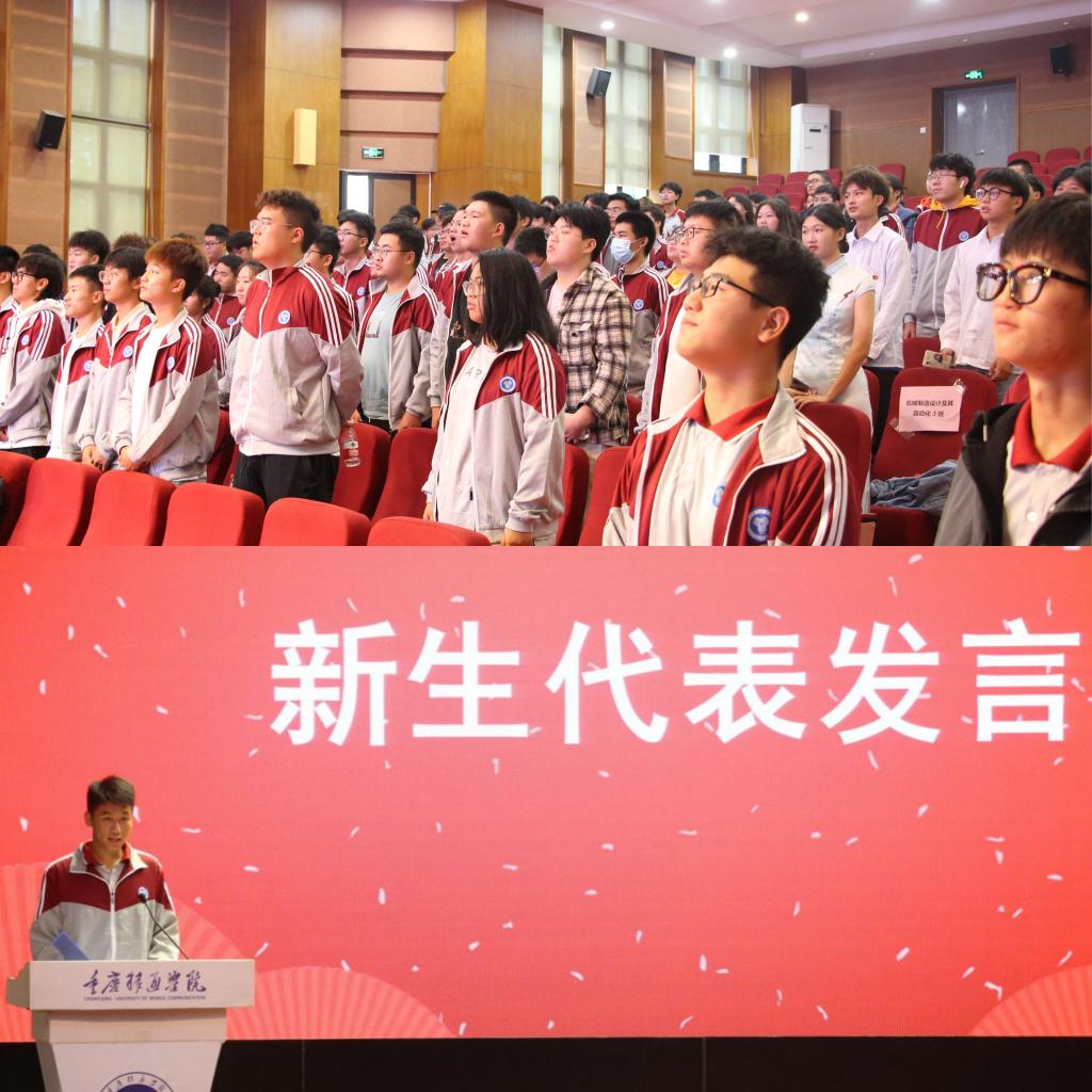 2021级学生樊列驹作为新生代表在发言中表达了圆梦中德的喜悦与憧憬,他号召同学们珍惜大学时光,心怀感恩,脚踏实地,坚定追求,努力成长为具有创新精神的复合型人才。随后,樊列驹带领全体新生宣誓,在校三年不负青春,不做学习的逃兵,全力以赴追逐留学梦。