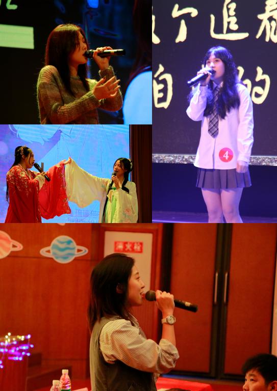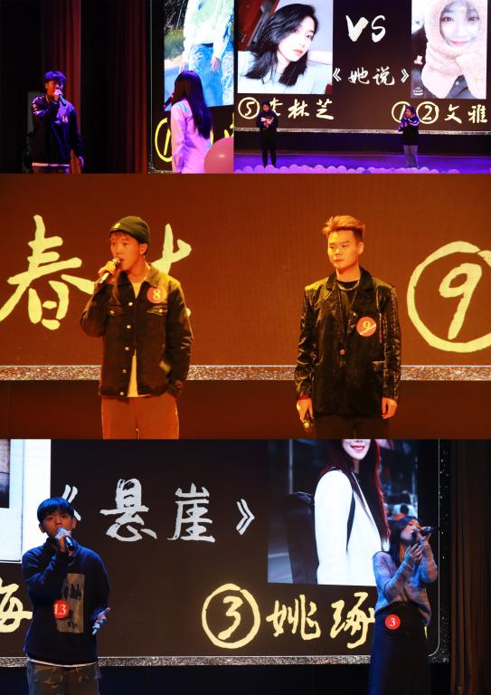 两轮的比拼将比赛带入高潮,选手们开始冠亚季军的争夺。决赛是晋级的五位选手独唱,尽情展示歌喉,充分显现自己。选手们越战越勇,在充分的准备后,情绪更加饱满激昂。观众们也都期待着选手们的精彩表现,每一位评委都全神贯注地凝视着每位选手的表演。在两个小时的激烈角逐之后,本次十佳歌手大赛决赛各个奖项尘埃落定,科幻中心张媛伊老师对此次活动进行专业点评,黄小梅老师与宋佳楠同学也为现场带来了一首动听的串场歌曲《赤伶》,赢得了观众的阵阵呐喊。各位老师分别给获奖选手颁奖,并合影留恋,至此,活动完满落下帷幕。