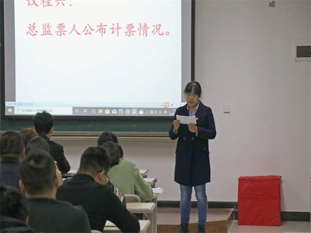 通过现场唱票、计票,总监票人杨佳义同志宣布最终选举结果,党晓圆、李巧、李洁、王瑞芳、孙良顺、张颖超、殷蓉7名同志当选为党总支委员。
