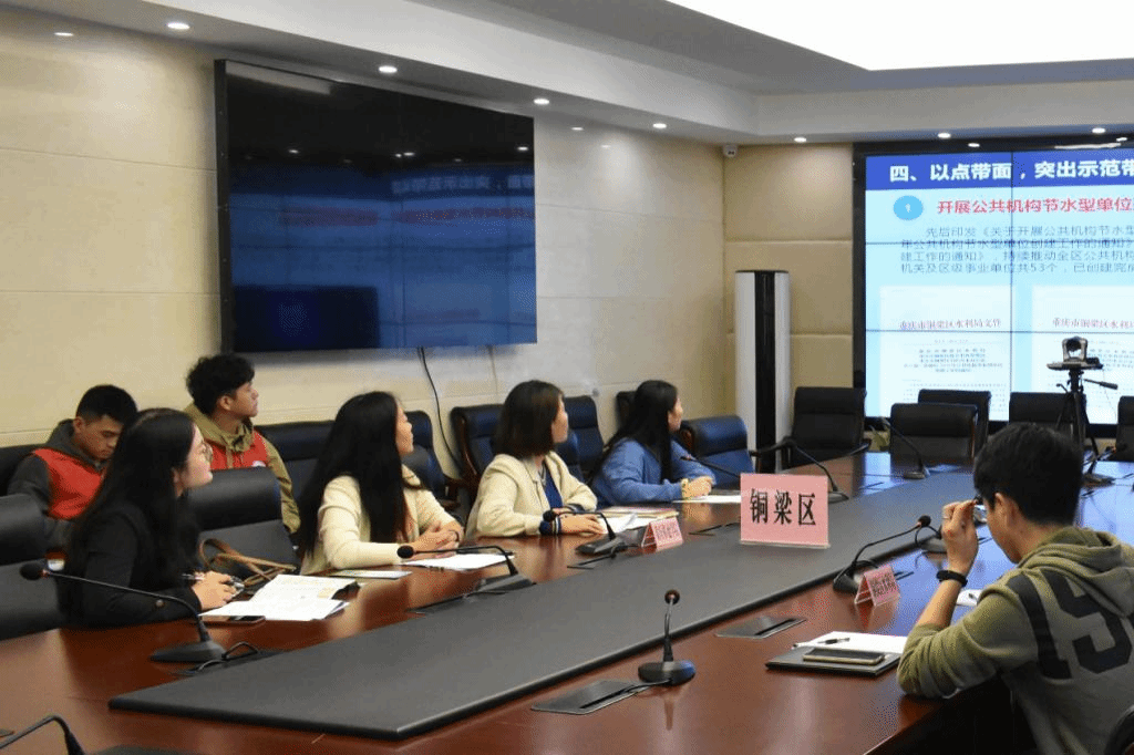 视听之窗,交流共长,玄天发展跃于唇齿。经过一个小时车程,调研团顺利到达铜梁区水利局。针对目前铜梁区水文化遗产资源现状及保护利用情况,调研团与铜梁区水利局召开座谈会,以铜梁区最具代表性的资源点玄天湖为主线,从各自领域出发,开展交流沟通。