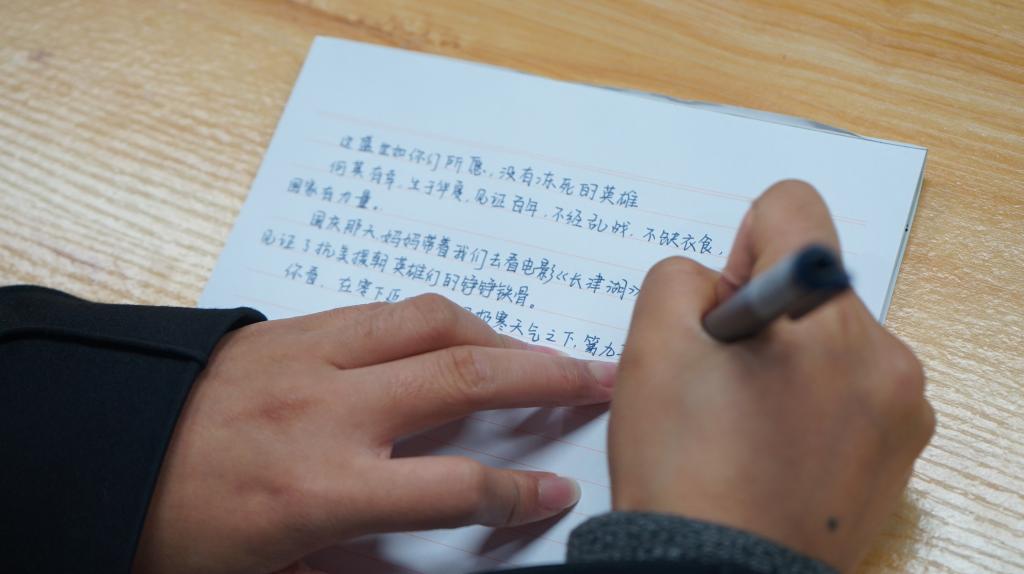 当今中国的繁荣与富强皆是革命先烈与共产党的精神指导奋斗而来。在现安定富足的社会中,我们不能忘记最初共产党领导的工农红军在长征中所展现出来的抗战精神。同学们在长津湖影片的影响下,也纷纷替参加长津湖战役的志愿军战士们写家书,以此纪念战士们的英勇奋战。