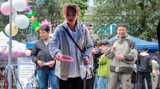 游园乐趣深深刻在童年记忆里,巡礼节以再做一个“白日梦”为篇章,通过扭蛋机、趣味投篮、自由涂鸦、自由套圈、即刻留影、画扇面等互动活动让大家探索游戏背后所代表的不同社团奥妙。黄桷树广场上,同学们踊跃参与,在各种游戏中大展拳脚,在不同游戏获得不同奖品,体验不一样的乐趣,通过游戏参与,仿佛置身在童年记忆的游乐园里,也沉浸在各类社团文化中,这便是走出宿舍,走进社团、体验大学生活的开始。