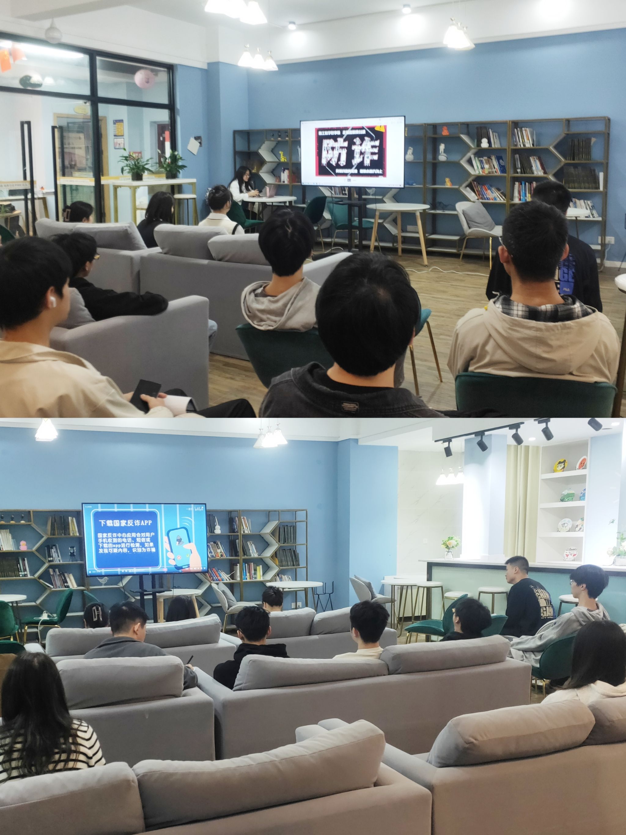 为增强防诈骗基本能力,提高大学生自身安全意识,保护人身安全和财产安全。北山书院在4月累计开展两次防诈骗宣讲会和一次空间打造,于4月17日和4月25日在坚韧会议室开展防诈骗宣讲会,共计40余人参加。两次宣讲会主要围绕如何让当代大学生提高警惕性和增强防诈骗意识、在网上冲浪时如何防止泄露个人信息和如何严加防范新型网络诈骗等三个方面进行宣讲;同期在空间打造上,北山书院在大厅放置电视播放《反诈宣传》、《电信诈骗》等视频,宣传多种网络诈骗,提升大学生防诈骗能力。