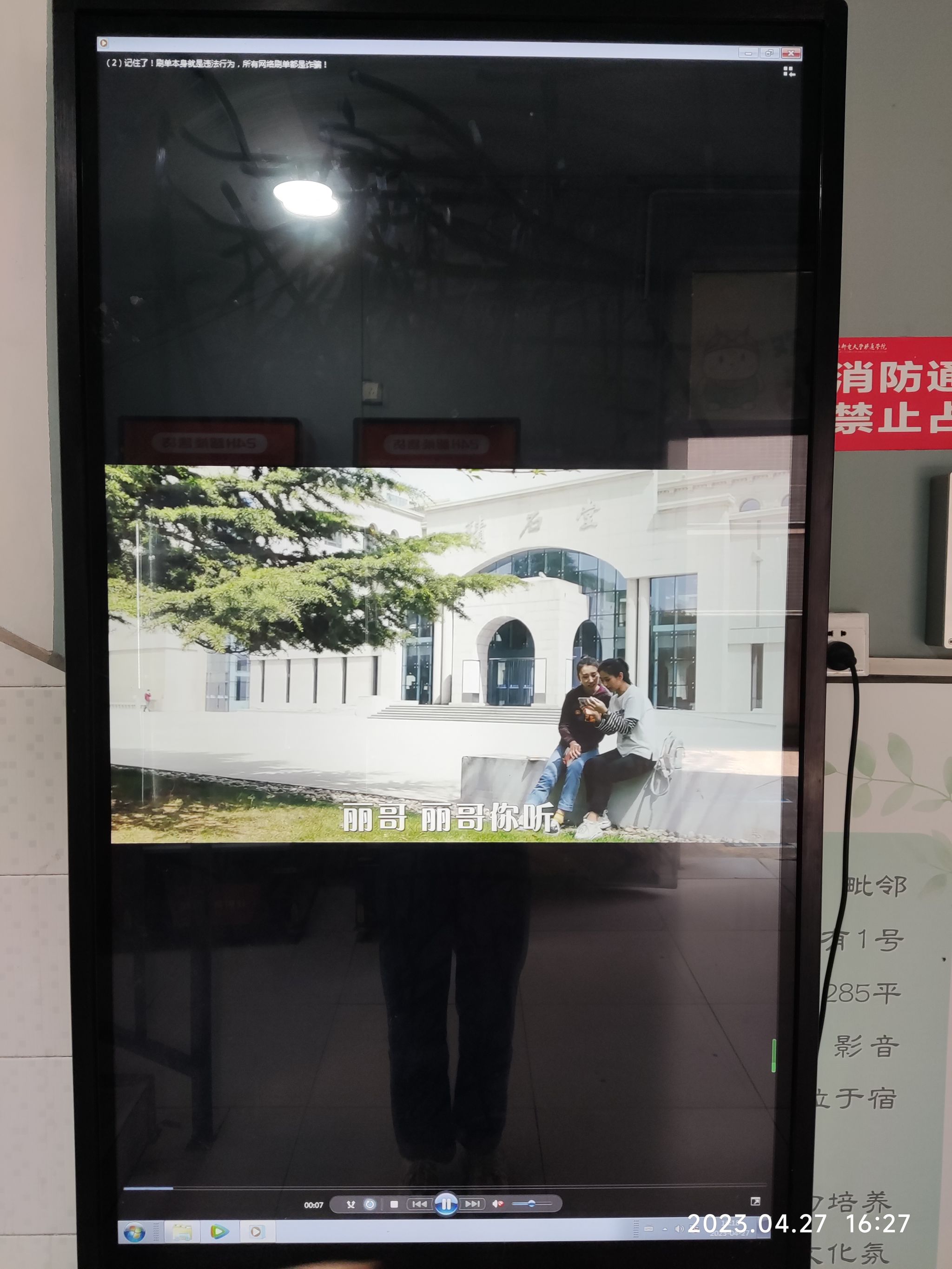 廊桥书院在学校整体反诈防控的工作指导要求下,从线上线下两个维度展开了反诈的宣传工作,首先是线上的宣传工作,廊桥在官方QQ等平台发布了一系列反诈宣传的图文材料,累计获得了千余人的浏览量与几十条点赞评论;其次是线下的反诈宣传工作,廊桥在入户大厅的广告机上不间断循环播放反诈宣传视频等,为每一个过路的廊桥学子都能看到诈骗的故事;最后,廊桥结合书院日常和学生的工作,也展开了各类的宣讲工作,在会上不断地和学生强化诈骗的危害,也强调不要贪图一时利益。