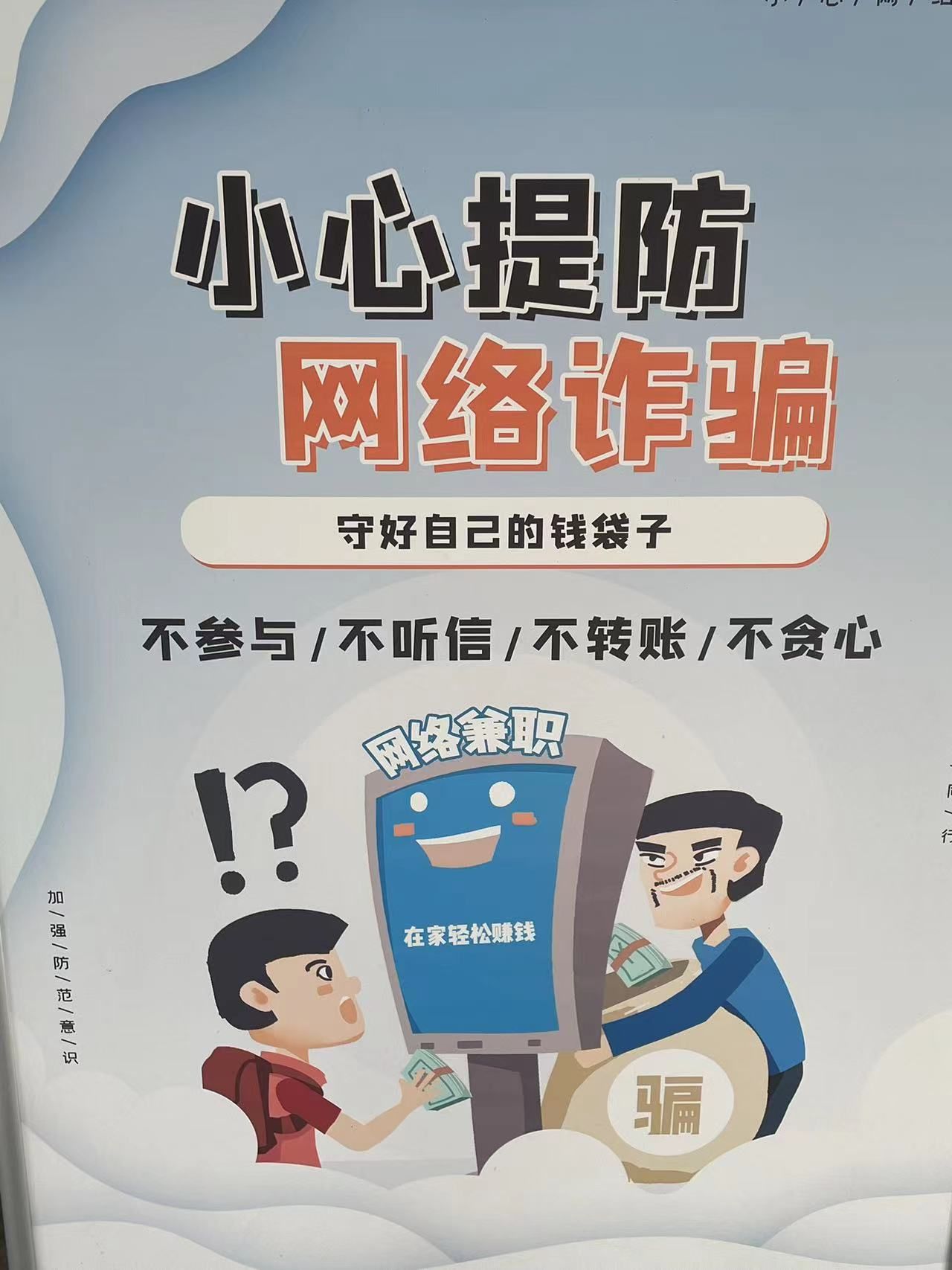 随着网络时代高速发展,近年来各种诈骗手段层出不穷,电信诈骗案件频频发生,为进一步强化防范电信网络诈骗的宣传教育力度,切实增强广大师生防范电信诈骗的意识,掌握防骗基本知识,有效减少和避免电信网络诈骗案件的发生,别都书院4月以来,采用了视频+图文的方式对书院空间进行了反诈宣传氛围营造。通过书院入户大厅播放“反诈骗宣传视频”、活动日历宣传栏张贴鉴别反诈方法等形式,充分提高了师生对防范电信诈骗的辨别能力,增强了对电信诈骗的认识和防骗、识骗、拒骗的意识,有效筑牢了防范电信诈骗的防火墙,为营造和谐育人氛围提供了保障。