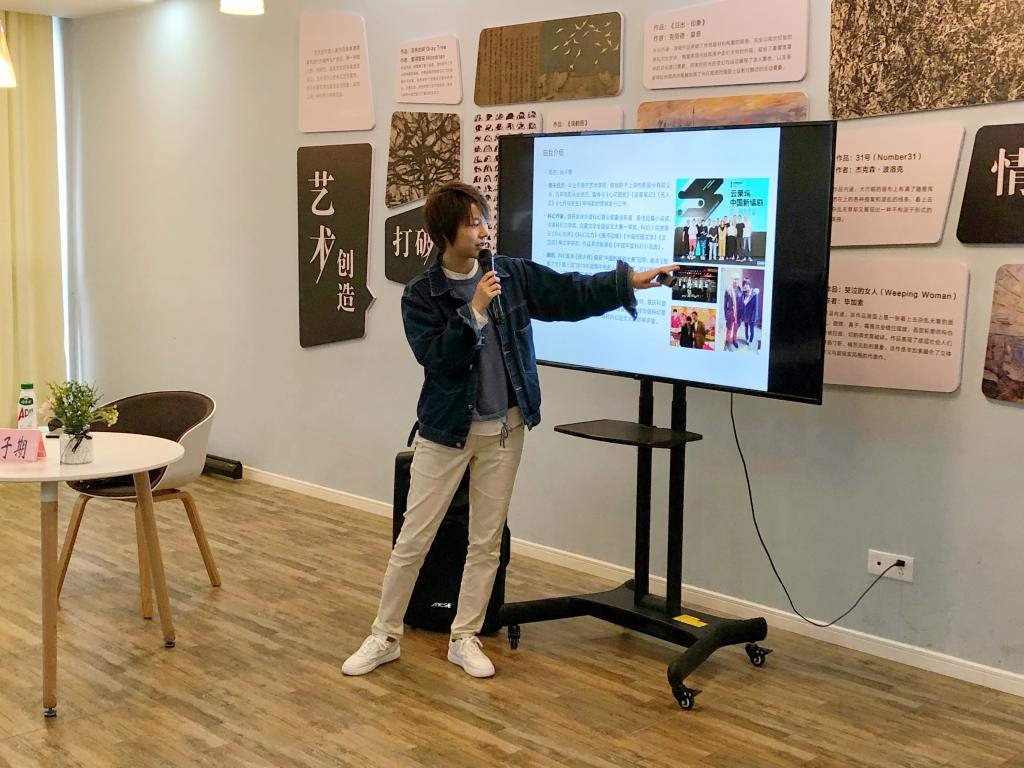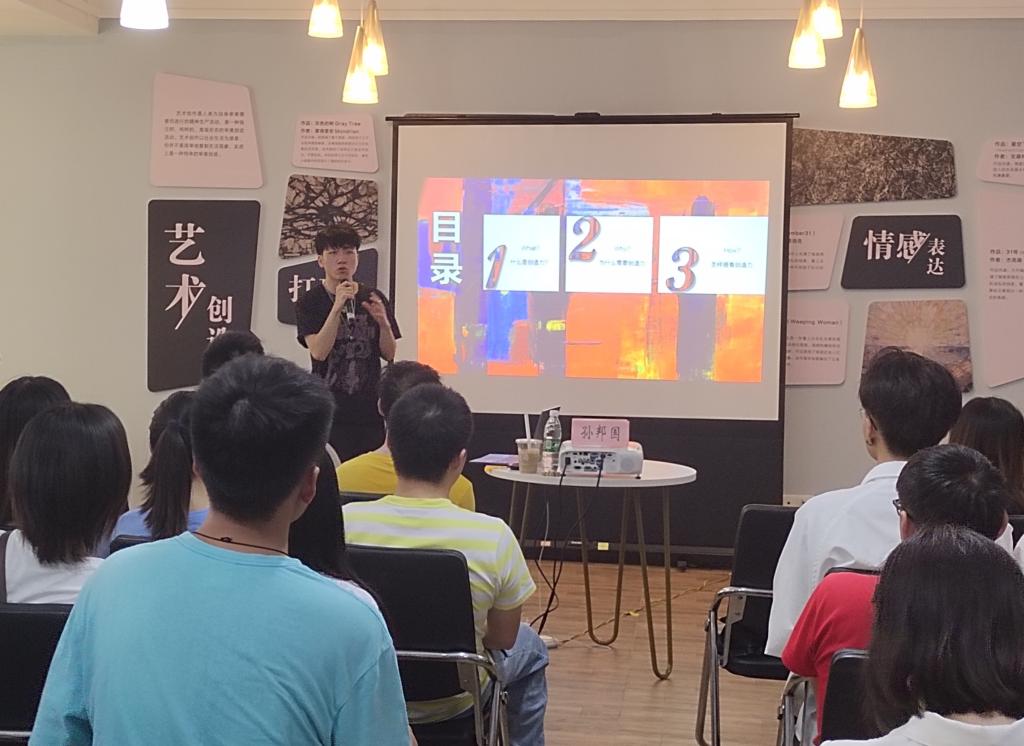 活动一开始,孙老师便由自己的经历谈到了创造力。他热情地向同学们发问:大家觉得三岁小孩子在画布上的涂鸦能被称作创造力吗?不少同学异口同声的回答道“算!”。