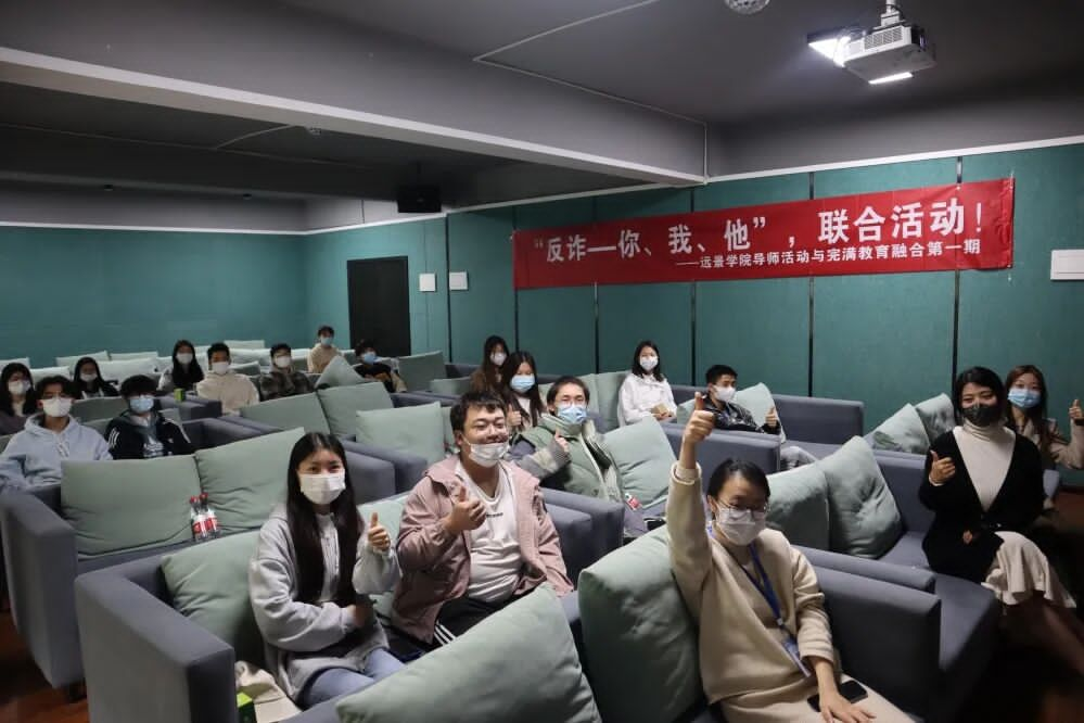 远景学生导师李晨晓、黄煌老师联合学院“猫头鹰”防诈志愿服务支队与指导老师杨斌誉开展了一场防诈骗教育活动。希望通过本次活动,提高同学们对诈骗手段的认识,增强防范意识,树立正确的价值观和消费观。