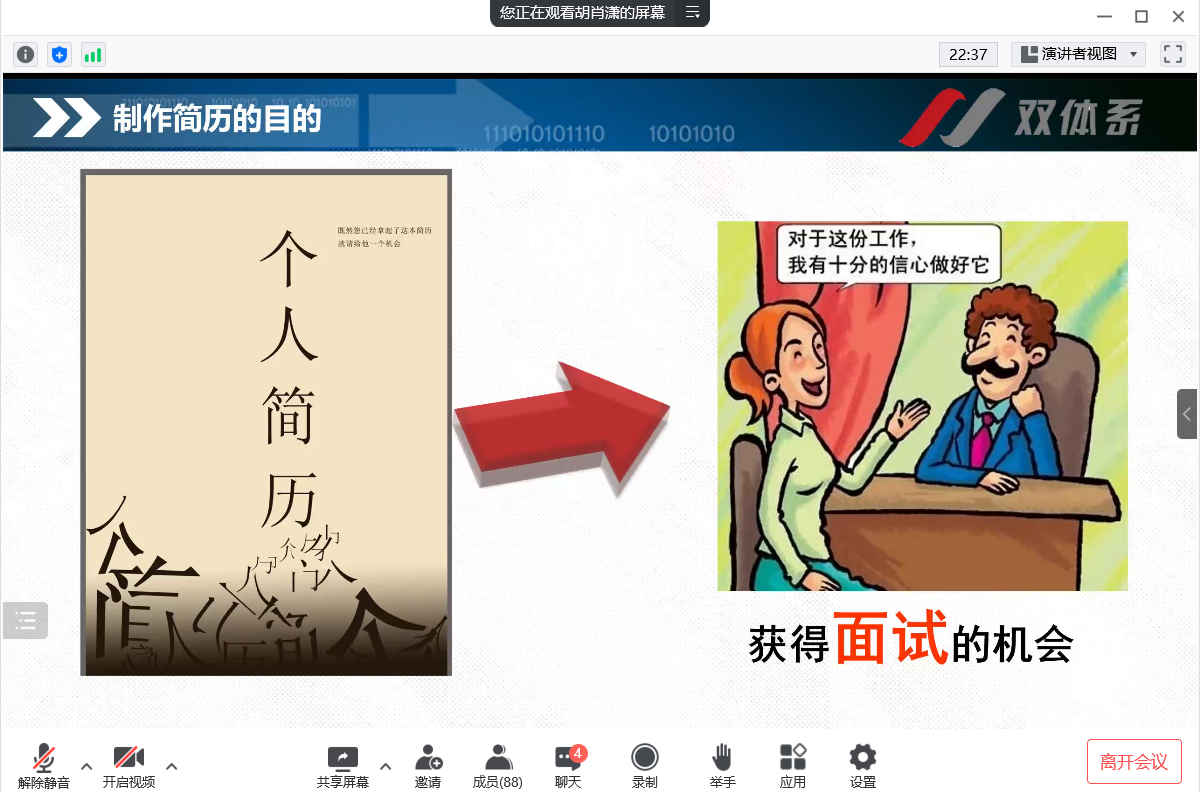 为提高我校学生简历制作能力,帮助其找准职场定位,增强职场竞争力。由就业创业指导与服务中心主办,数字经济与信息管理学院承办的“优show简历,职显芳华”第26期求职技能训练营,于2022年5月25日14:30在腾讯会议举办。