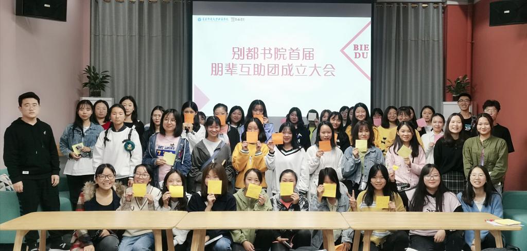 为推进别都书院朋辈圈层构建,在书院内营造共享、共进、共赢的朋辈氛围,实现大学生间朋辈引领、朋辈互助作用,引导学生之间形成良好的互动互助模式。从2019年10月起,别都书院通过兴趣引导、朋辈双选会的形式成功组建朋辈互助团,招募高年级优秀学生志愿者与新生组成朋辈互助团。目前共吸纳朋辈互助团成员122名,通过兴趣挖掘、圈层互动、实操训练、日常行为养成等形式,不断提升朋辈互助团成员间的交流互动与技能提升。