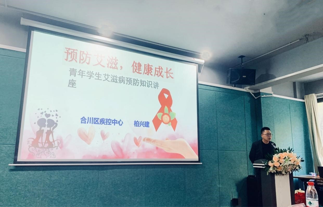 活动现场,合川区疾控中心艾防科柏兴建老师带来了艾滋病防治宣讲,其中,柏兴建老师提到:“当代大学生的生理处于活跃时期,心理发展还未完全成熟,知识尚不完整,性观念又比较趋于开放,自我保护意识不强,缺乏相关的经验和知识来抗击艾滋病,导致青年学生感染艾滋病的比率也在逐年上涨。”在宣讲中,同学们也逐渐认识到感染艾滋病的危害及防艾的重要性和应该如何正确的做到预防艾滋病。