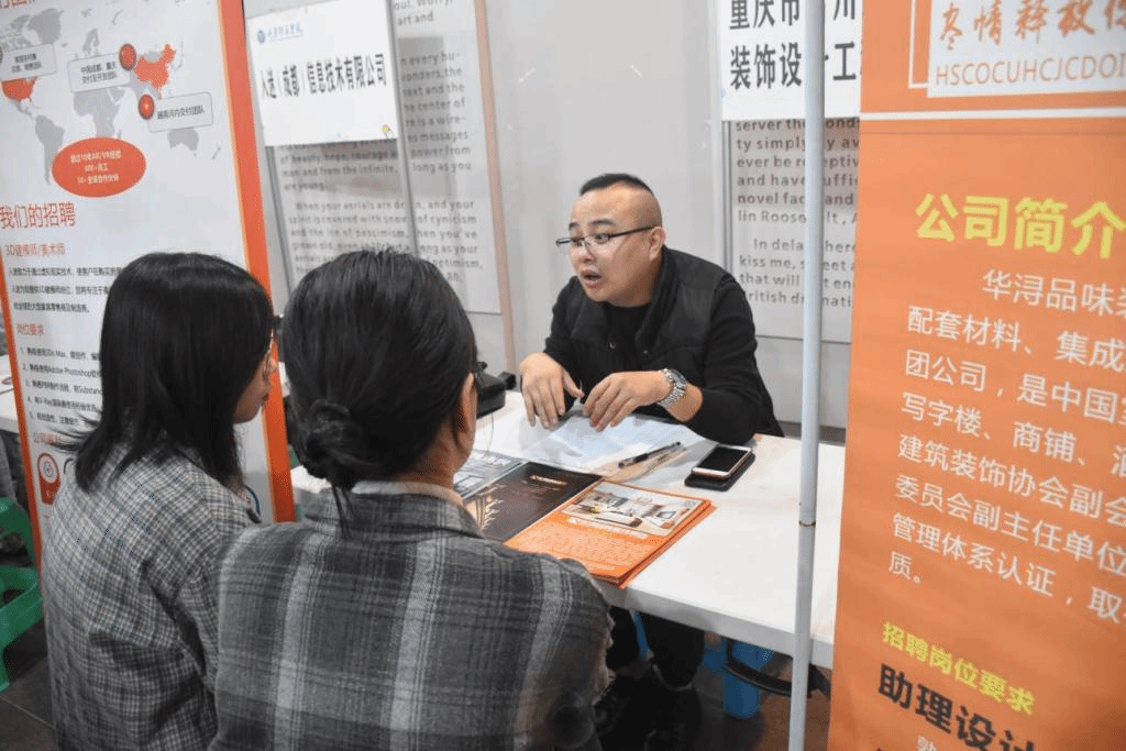 双选会中参加招聘的企业除了有众多市内知名企业,例如重庆龙湖地产发展有限公司、重庆帕斯亚科技有限公司、重庆九小时童话责任有限公司、重庆儿童天堂摄影有限公司等等之外,也有相当比例的市外公司,在满足不同专业毕业生就业方向的同时,也充分考虑到想要去外地工作的学生。并且此次双选会主要是针对艺术传媒学院的学生,十四个企业提供了多个就业岗位来供求职者选择,保证了大多数毕业生都能够选择到与自己专业对口且喜爱的工作。作为一名合格的招聘者,首先要有良好的语言沟通能力,其次是要有丰富的阅历,企业负责人根据自己以往的经验,来判断毕业生是否真正适合这份工作。薄薄的简历,简短的面试,除了要考验求职者的专业技能,更多的是看他们对于这份工作的态度。