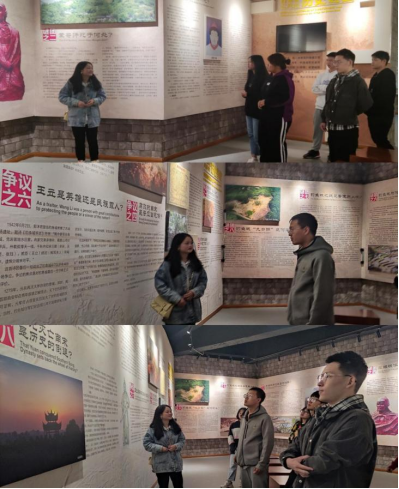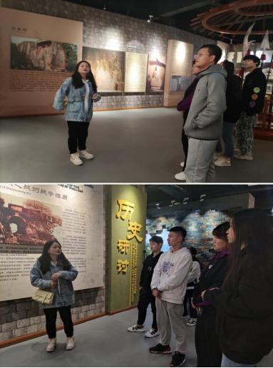 讲解员向腾带领同学们前往展厅参观并欣赏师生创作的作品及有关于钓鱼城的诗歌,与同学们分享鱼城民谣与其中的神话故事,为钓鱼城增添一丝神秘感;除此之外,列举一些三圣岩,千手观音,千佛石窟,护国寺等文化文物遗址,给同学们展现钓鱼城整个古建筑的风采,带同学们一同感受浓厚的历史文化氛围。